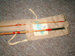 This rod has hardly been used. All varnish and original rings are in very good condition. Rod is 100% straight. A joy to fish with. Light spinning 5-15 grams. 6- 8lb line - trout and perch - that sort of thing. I think it was probably made in the 50's or 60's.