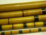 Milwards split cane trout fly rod 3pc 9 1/2 foot. This is a lovely example of the Milwards style, with all whippings present and original. Intermediate whippings range from every 1/2" at the butt to every 1/4" at each of the tips! Both tips correct and undamaged, no repairs. Lined tip and butt rings. Brass fittings all good with only a little of the blue finish worn on the reel fittings. Original finish complete to all other fittings (butt, handle collar, ferrules) and are great - as seen in the photos. Butt stamped Milwards and "Made in Britain" to reverse.