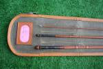An early Sharpes of London three piece Avocet rod, whole cane butt section and split cane middle and top section. I believe that Sharpes bought the rights to the Scottie logo and set up in business making split cane rods in the early nineties. The company had a professional rod finisher at the time by the name of Phil Hawker and the early rods from that period were of very high quality. The rod is in near mint condition and carries the Scottie logo above the handle. The rod is dated 1998 and and the build is of very high quality. There has been no refurbishment as in ring replacements to the rod but it has been professionally varnish dipped to a smooth glass like finish. Rod is straight and ferrules pop when rod is dismantled. Rod length is 11ft with amberfin type butt and tip ring. Handle measures 23 inches from aluminium cone above handle to bottom of rubber button. Overall a nice lightweight rod for trotting and would suit the traditional angler that wishes to fish with a modern classic.