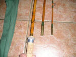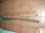 This is a 12 foot split cane bottom rod called the "Sprite" made by the old London firm Sowerbutts. In 1994 the rod was refurbished with a couple of new rings, reel bands, inscription and a coat of varnish applied by Peter Aspindale and his wife of Aspindale and Sons Company.. The rod is beautiful and in as new condition having only light use since. The rod has a mellow medium action and handles tench and bream over 5lb. I never used the rod for carp fishing but it could be used for smaller carp on commercial waters. Its a perfect float rod. The handle is 28in long and and the butt and tip rings are agate lined with no cracks. The rod comes in a three section bag which does not have the makers name on.